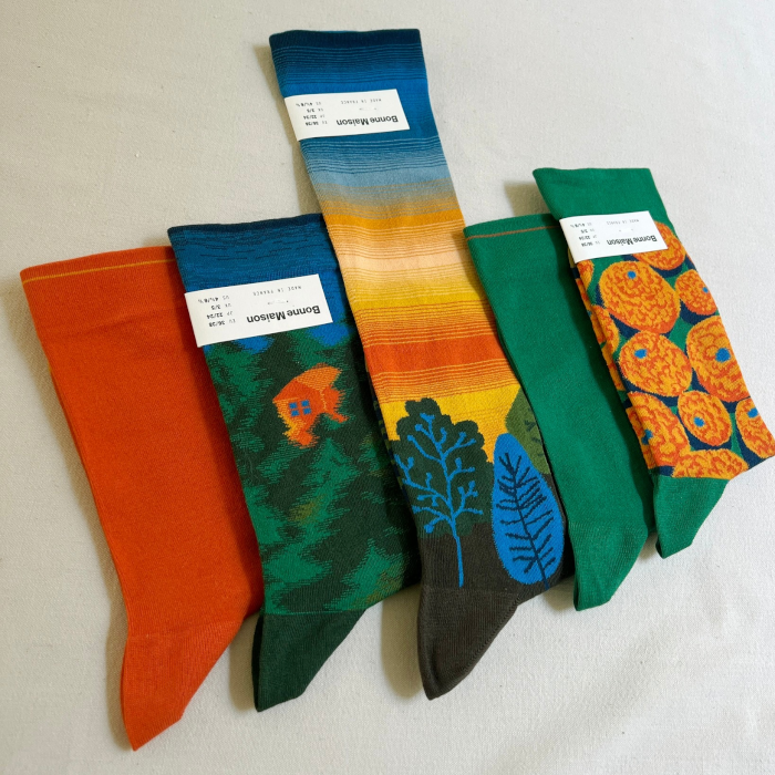 Nous avons sélectionné un coton gazé égyptien de grande qualité, filé très fin en Italie. Nos chausettes sont tricotées double fil pour une solidité optimale, la pointe est renforcée.