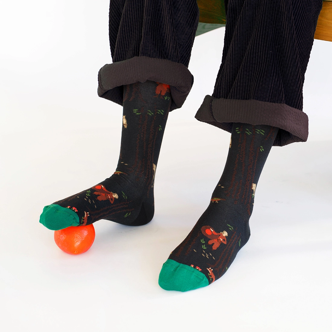 From the window of a log cabin in the depths of a far northern forest, as dusk heralds the fall of the night, keep watch for the northern lights. Further afield, the dark blue shadows of wild animals lengthen across the pack ice. An Inuit mask celebrates the importance of the sun. Snug as a bug, the animals of the forest gather on a sock. Big round flowers resemble oranges. Shades of Mykonos blue, emerald greens and a palette of orange and golden yellow hues lend a 70’s feel to the picture.